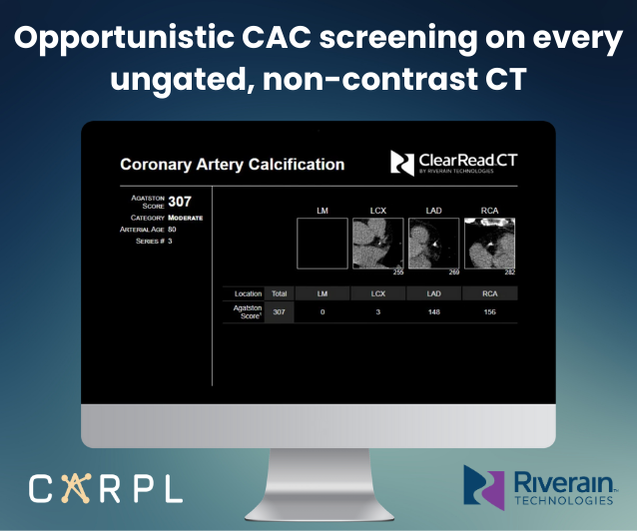 Opportunistic CAC screening is now possible with ClearRead CT CAC and CARPL.AI by leveraging every ungated, non-contrast chest CT for cardiac risk assessment and early intervention. ClearRead CT CAC accurately detects, quantifies and reports an Agatston score and risk level. The normalization capabilities lend to high accuracy across CT systems for consistent results, regardless of the equipment used. In a clinical study, ClearRead CT CAC demonstrated high agreement with readers and gated CAC exams for an accurate result on ungated CTs.*